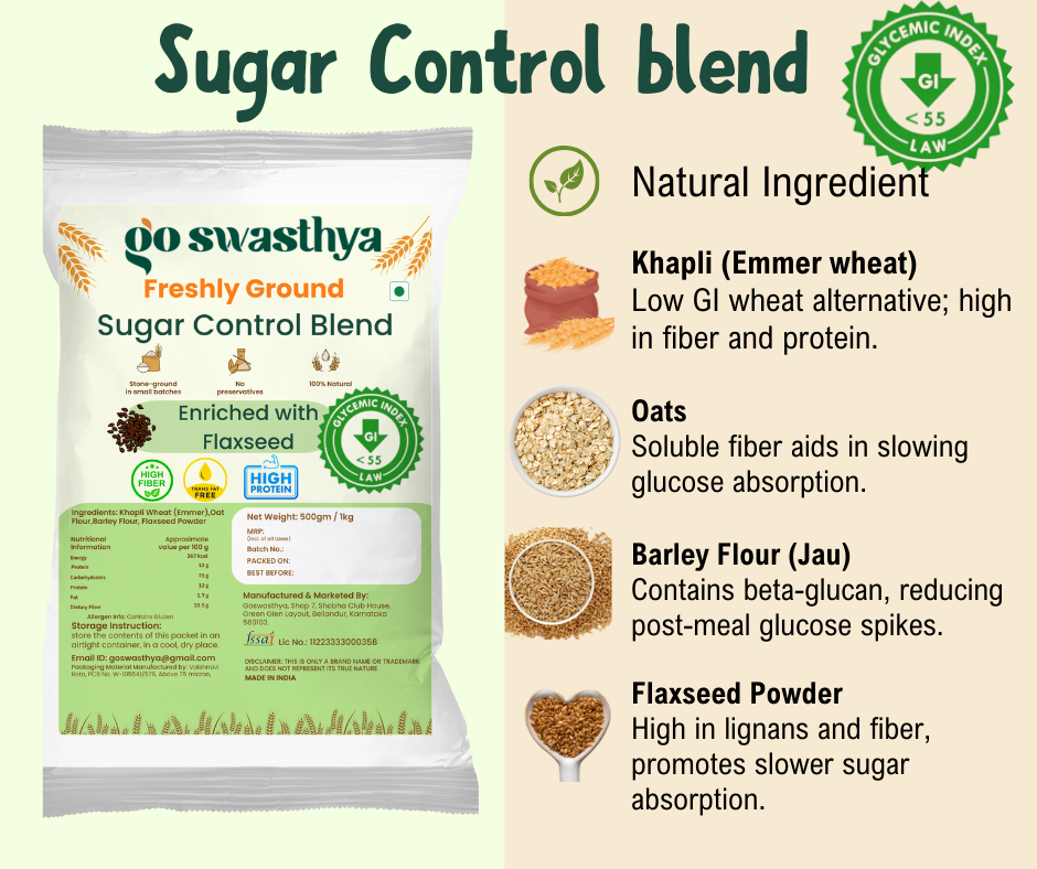 GoSwasthya's Sugar Care atta is formulated considering daily requirement of Roti as well as making sure that it help in Sugar control post every meal.